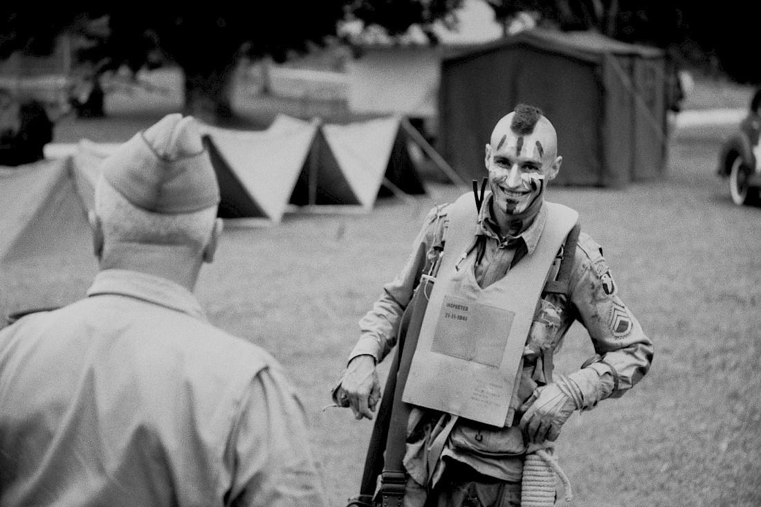 Depuis 2008, le Samoëns American Festival rassemble, tous les ans, les adeptes de l’histoire et de la culture américaine. Le temps de quelques jours, et comme si toute la chronologie avait été compressée, le village de Haute-Savoie se transforme pour accueillir, simultanément, les représentations made in USA les plus populaires. L’anachronisme qui découle de l’affrontement de ces mythes est fascinant. Le spectateur vagabonde d’un tableau à l’autre, où se redessine, à chaque fois, des formes pittoresques d’appropriation culturelle ; comme si la Haute-Savoie avait la tentation de conquérir l’histoire des États-Unis, histoire qui a elle-même su absorber les cultures amérindiennes et européennes pour se constituer.
