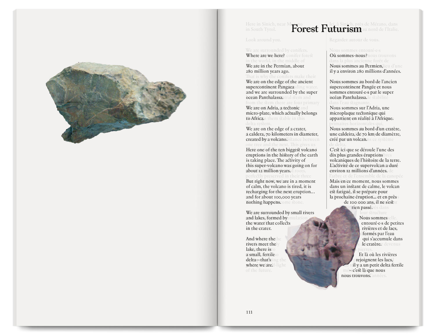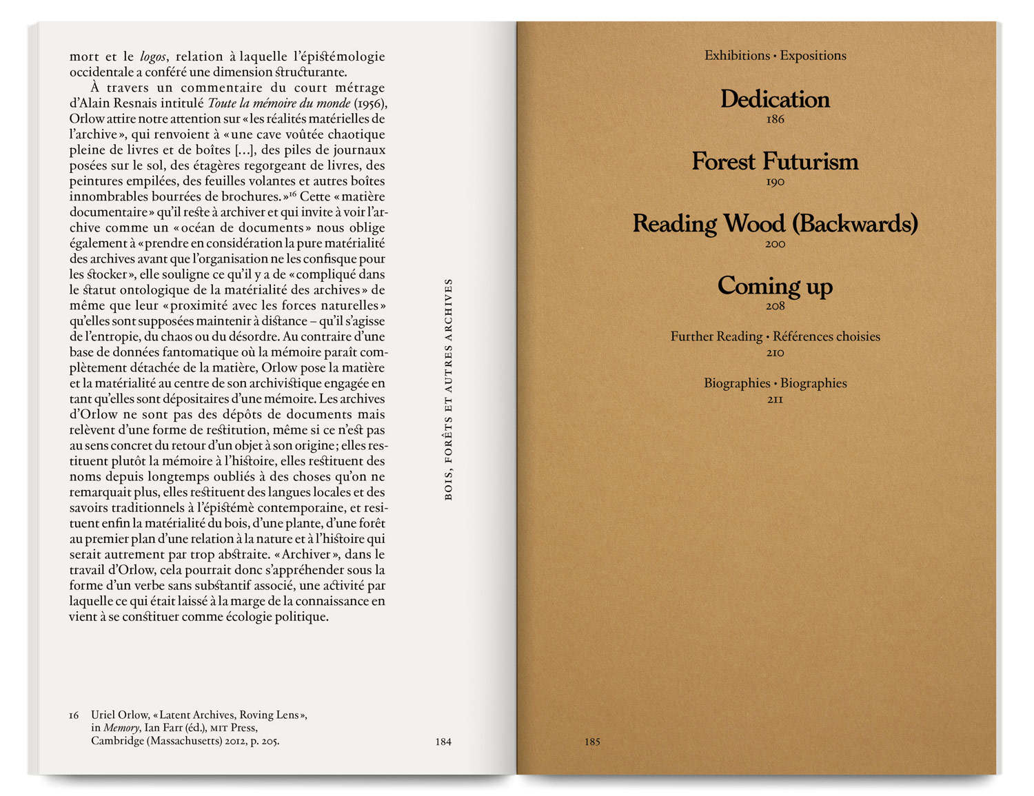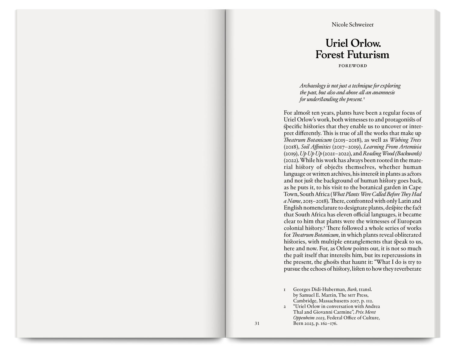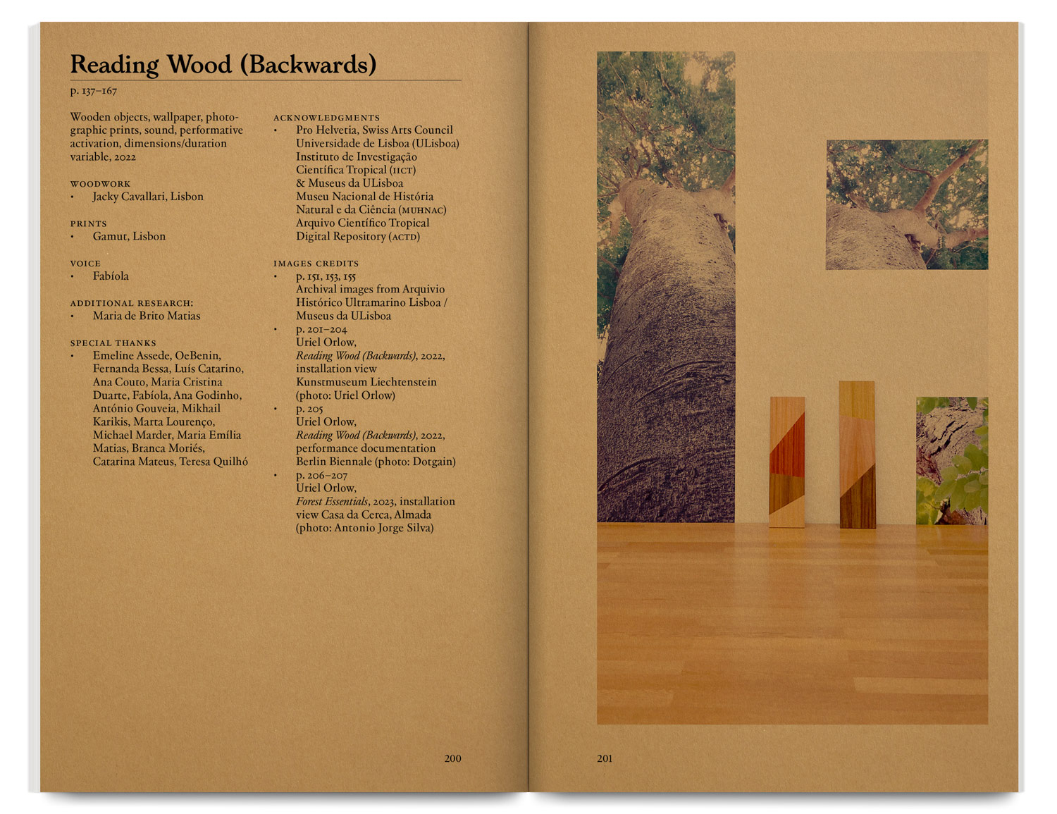 The catalogue brings together the projects Reading Wood (Backwards) and Forest Futurism, where Uriel Orlow explores plant life beyond human history, linking tree fossils and the future of forests.