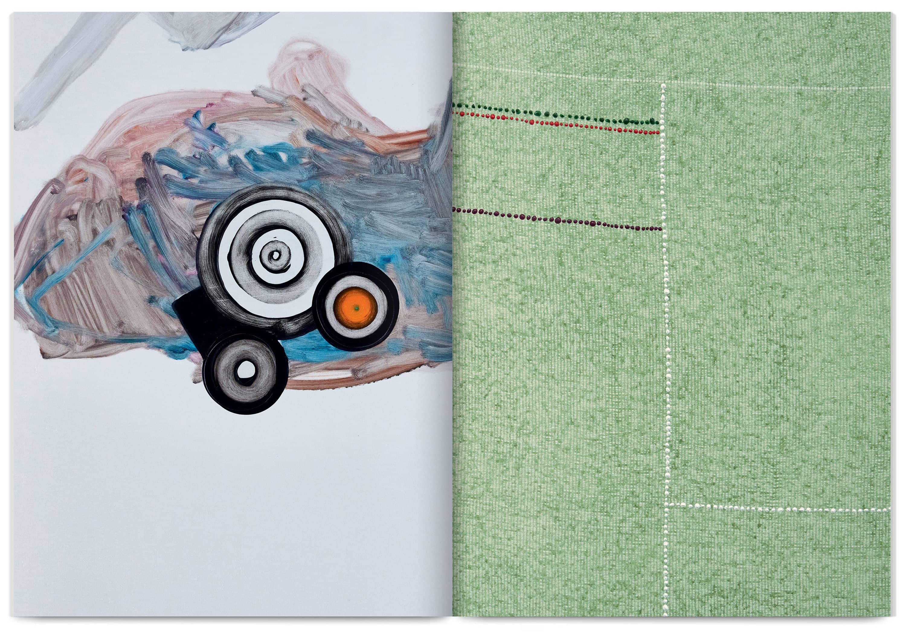 Designed as a playful editorial object, this publication accompanies José Loureiro’s 2024 exhibition at Frac Grand Large — Hauts-de-France. Composed of three independent books, it offers multiple points of entry into the painter’s radical universe: texts and exhibition views, a catalogue of works, and a zoomed-in exploration of motifs and colours. Thwarting linearity as much as chronology, this book proposes a playful reading experience and invites viewers to approach painting from every angle.