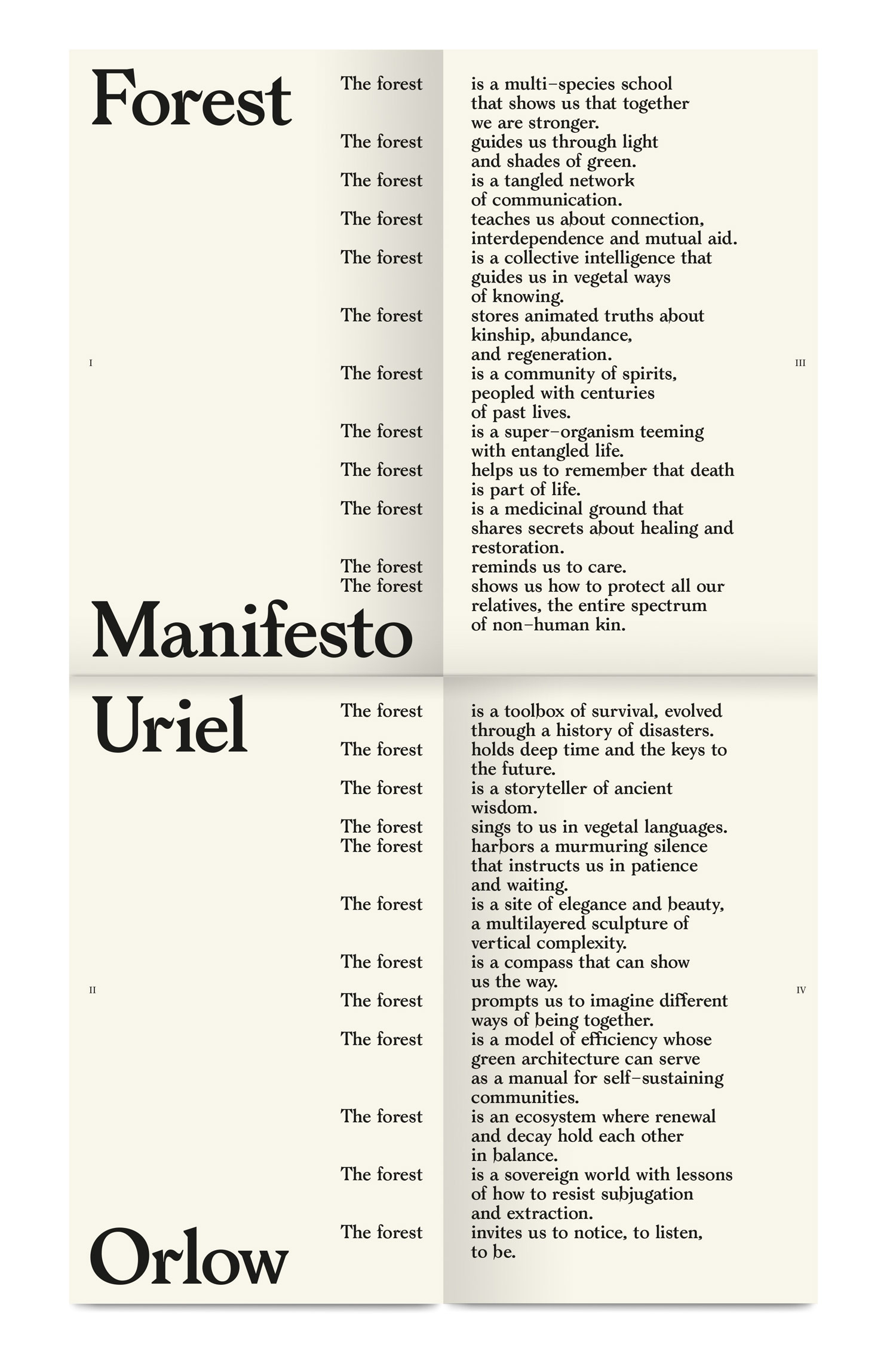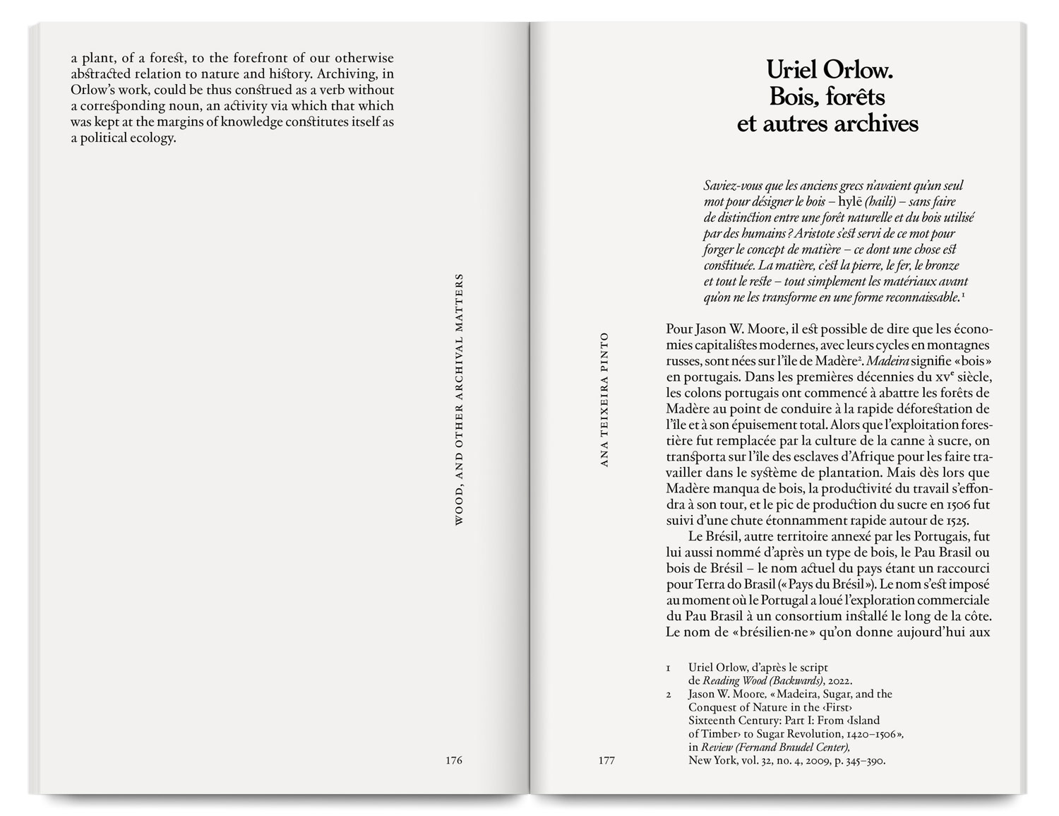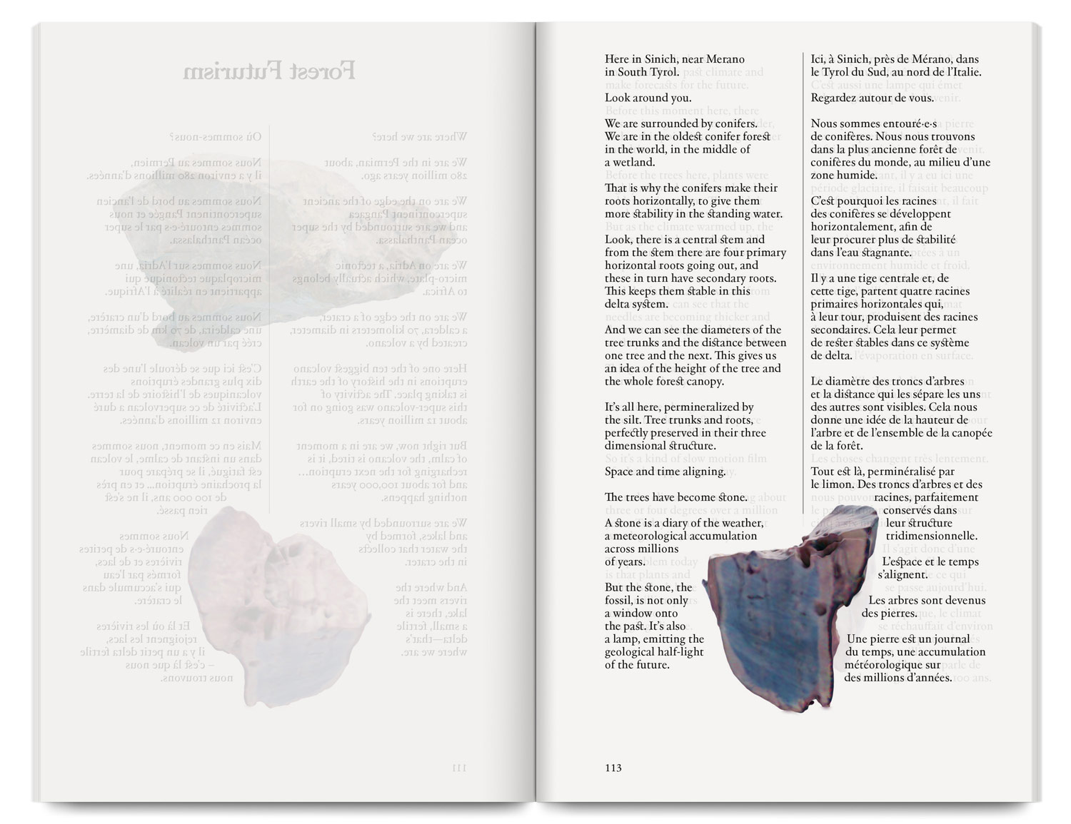 The catalogue brings together the projects Reading Wood (Backwards) and Forest Futurism, where Uriel Orlow explores plant life beyond human history, linking tree fossils and the future of forests.