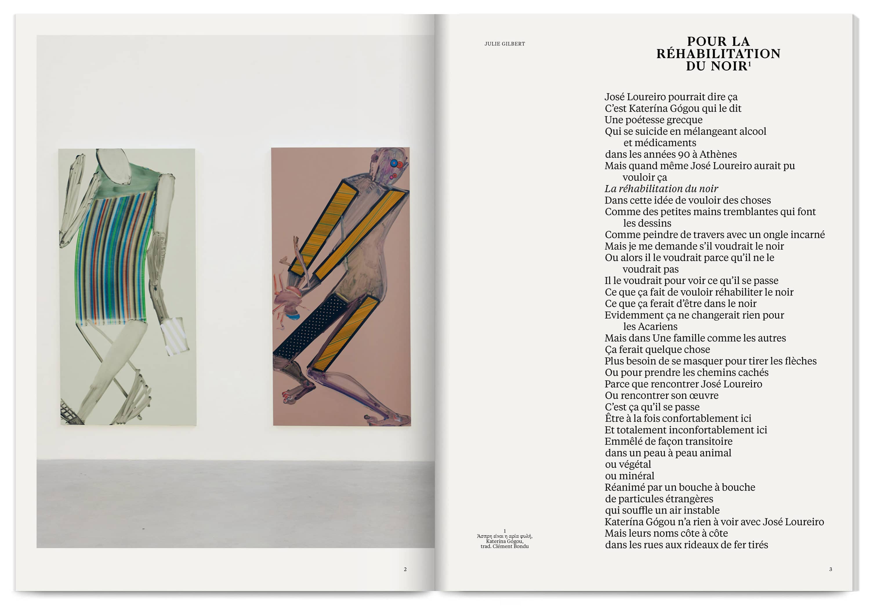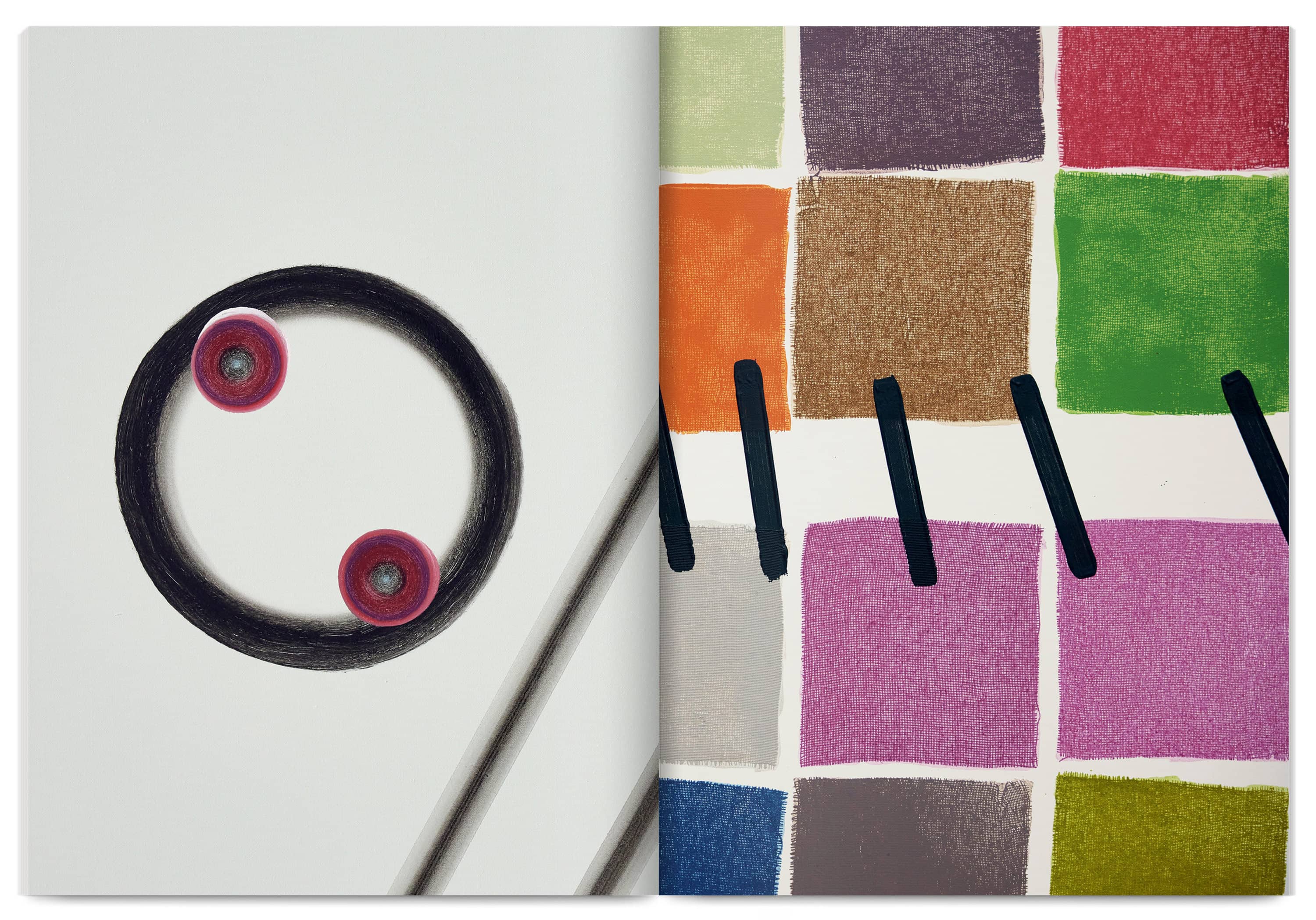 Designed as a playful editorial object, this publication accompanies José Loureiro’s 2024 exhibition at Frac Grand Large — Hauts-de-France. Composed of three independent books, it offers multiple points of entry into the painter’s radical universe: texts and exhibition views, a catalogue of works, and a zoomed-in exploration of motifs and colours. Thwarting linearity as much as chronology, this book proposes a playful reading experience and invites viewers to approach painting from every angle.